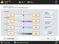 Carregue em <Alterar progs impressão>, <Opções> e <Equilíbrio de cores>.