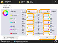 para <Todas cores>. Para programar cada cor separadamente, utilize os botões à esquerda e à direita de cada cor. Quando o ajuste estiver concluído, carregue em <OK>.