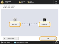 <Ajust. matiz de preto>Ajuste para o lado de <Mais claro> para evitar que a imagem fique demasiado escura. Ajuste para o lado de <Mais escuro> se o texto e as imagens estiverem demasiado claros. Quando o ajuste estiver concluído, carregue em <OK>.
