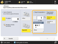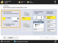 Especifique a página de inserção das folhas, programe o número de folhas e selecione se pretende imprimir nas folhas.