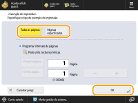 Selecione páginas para o exemplo de impressão e carregue em <OK>.