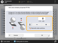 Este modo pode afetar a alimentação de papel. Como aumentar demasiado o valor pode provocar o encravamento do papel, recomenda-se que ajuste os valores em pequenos incrementos. Se um canto estiver dobrado na impressão frente e verso, programações de correção de encaracolamento inadequadas no primeiro lado da impressão frente e verso poderão resultar num encravamento do papel. |