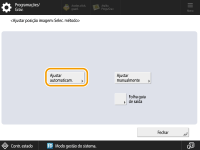 Recomendamos a utilização apenas um deck para papel para trabalhos com ajuste automático. Quando efetua o procedimento de ajuste automático da posição da imagem com o tipo de papel personalizado, as programações de ajuste são guardadas após o trabalho ser impresso. |