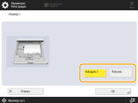 1 | Выберите стойку для бумаги, в которую загружена бумага, и нажмите <Пользоват. формат>. |