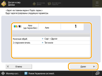 Если для параметра <Запустить вызываемую операцию (Операция запускается при нажатии кнопки.)> установлено значение <Выкл.>, то отобразится экран настройки. На нем можно изменить параметры, прежде чем нажать клавишу <Пуск печати> для выполнения операций.