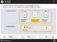 Настройте позицию сгиба для центральной прошивки и позицию скрепок таким образом, чтобы они располагались посередине бумаги. Напечатайте тестовую страницу, проверьте текущее состояние позиции сгиба и ширину сдвига на тестовой странице и затем выполните регулировку.