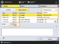 (Монитор состояния) отображается экран «Монитор состояния», на котором можно просмотреть и распечатать историю использования каждой функции, например копирования, печати, отправки по электронной почте, отправки и получения факсов и И-факсов и т. д.![]() |