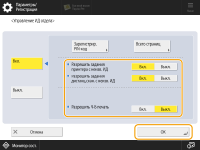 Для функций, управление которыми следует организовать, выберите значение <Выкл.>, после чего нажмите кнопку <OK>.