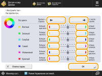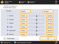 для параметра <Все цвета>. Чтобы установить каждый цвет по отдельности, используйте кнопки слева и справа от каждого цвета. По завершении настройки нажмите <OK>.