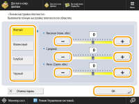 <Точн. настр. плотности>Выберите цвет и настройте уровень плотности по его зоне плотности с помощью кнопок <-> и <+>. По завершении настройки нажмите <OK>.