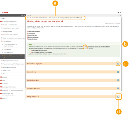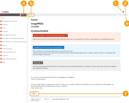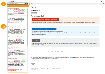 Klicka här för att få information om hur du visar Användarhandbok, gör sökningar och visar annan information.