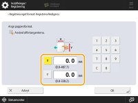 Ange längden på sidan <X> och sidan <Y>. Tryck på <X> eller <Y> för att ange längden på varje sida med sifferknapparna.