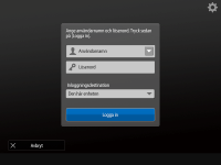| | Med denna metod kan användare logga in genom att ange användarnamn och lösenord med tangentbordet som visas på kontrollpanel. Den här metoden är tillgänglig oberoende av vilken autentiseringsenhet som används. |
