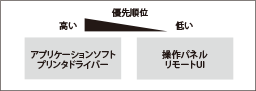 メニュー機能とアプリケーションソフトやプリンタードライバーとで同じ設定項目がある場合には、アプリケーションソフトやプリンタードライバーで設定した内容の方が有効になります。また、メニュー機能にしかない項目を、操作パネルで行う場合とリモートUIで行う場合では、あとから設定した方の内容が有効になります。