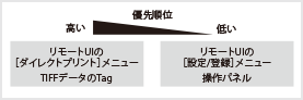 操作パネルやリモートUIの[設定/登録]メニューで設定した内容よりもリモートUIの[ダイレクトプリント]メニューや画像ファイルのTIFFデータのヘッダーが持つIFD(Image file directory)の中にあるTagで設定されている内容が優先されます。