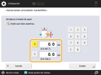 Especifique la longitud del lado <X> y del lado <Y>. Pulse <X> o <Y> para introducir la longitud de cada lado con las teclas numéricas.