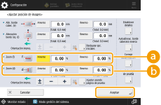 Cuando vuelva a abrir la pantalla <Ajustar posición de imagen> después de cerrar esa pantalla pulsando <Aceptar>, los valores de la pantalla volverán a <0>. Sin embargo, el valor ajustado seguirá siendo efectivo. Si repite los pasos, lea el valor de las marcas de registro de la nueva página de prueba e introduzca el nuevo valor.