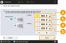 3 | Vuelva a imprimir la página de prueba y compruebe la posición de la imagen  pulse <Aceptar>. Vuelva a repetir la corrección si es necesario. |