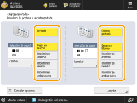 Para añadir una portada, pulse <Portada>. Al imprimir en la portada, puede establecer dónde imprimir, en el anverso, en el reverso o en ambos.