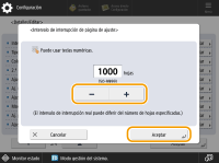Establezca un valor entre 50 y 9999 hojas como el intervalo de interrupción para las páginas de ajuste y, a continuación, pulse <Aceptar>.