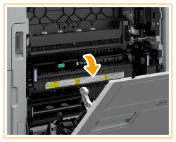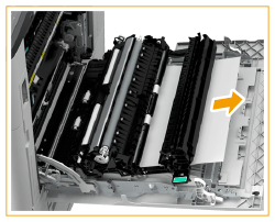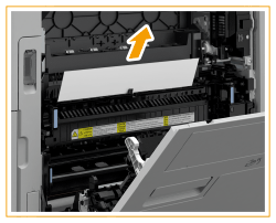 | 如果纸张卡在双面组件的上部区域,按照箭头方向轻轻向外拉出。 |