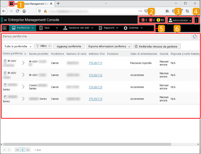 Se si usa Chrome, Edge o Firefox, la favicon viene visualizzata come segue in base allo stato delle periferiche di destinazione da gestire.