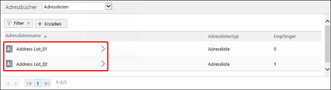 Klicken Sie auf [Erstellen] im Menü [Datenverwaltung] > [Adressbücher] > Seite [Adresslisten].
