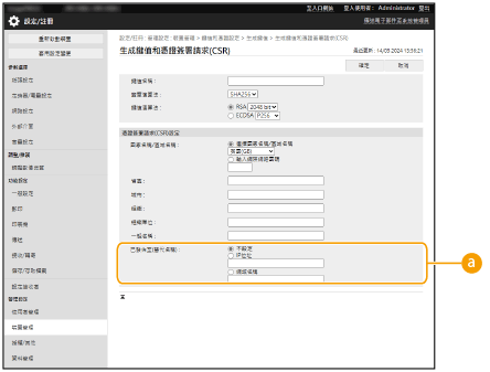 產生鍵值和CSR時,您現在可以設定[已發佈至(替代名稱)]。