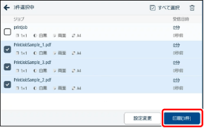 画面右下の[設定変更]を押すと、選択中のジョブのプリント設定を変更できます。