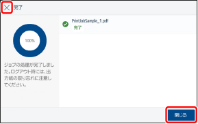 [詳細を表示する]を押すと、処理状況の確認や、ジョブのキャンセルができます。 処理が失敗した場合は、エラーメッセージが表示されます。ファイルを選択しなおして、プリントを再度実行してください。 |