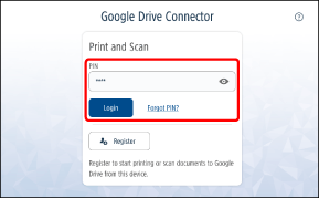 User registration must be performed and authentication settings must be configured in advance. Prepare the PIN code obtained during the user registration process. |