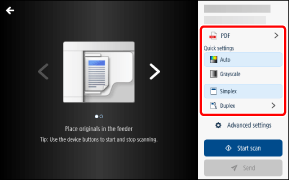 Scan size*2 | Auto Free size Manual Originals have different sizes (On, Off) |