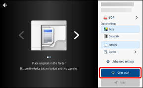 If the file format is PDF, you may not be able to scan additional pages, depending on the version you are using. If saving the files is taking too long or saving fails, notification is sent via e-mail. |