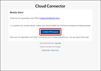 If you cannot click [Confirm PIN request], change the display format of the e-mail to HTML. For information on changing the display format, see the manual for your e-mail client.