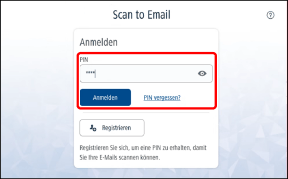 Eine Benutzerregistrierung ist erforderlich. Halten Sie den PIN-Code bereit, den Sie bei der Benutzerregistrierung erhalten haben. |