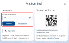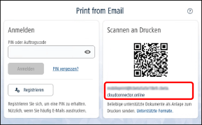 Die E-Mail-Druckfunktion kann ohne Benutzerregistrierung verwendet werden.