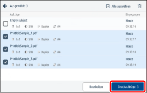 Wählen Sie die zu druckenden Aufträge aus.