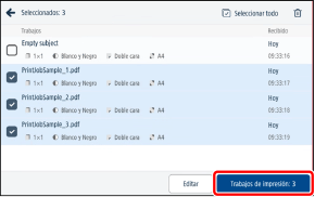 Pulse un trabajo de la lista para visualizar una casilla de verificación en la que seleccionar si desea imprimir el trabajo.