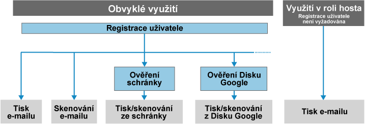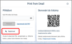 Používáte-li pouze funkci Tisk přes e-mail, není registrace uživatele nutná. Je to ale praktická, pokud budete tuto funkci používat opakovaně.