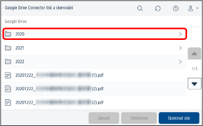 ] a zadejte část názvu složky nebo souboru, který chcete vyhledat. Prohledají se složky pod aktuální složkou. (U některých složek se nezobrazí [ ].) |