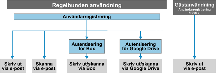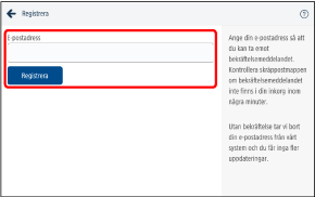 Användarregistrering krävs inte när endast funktionen utskrift via e-post används, men är praktiskt om funktionen kommer att användas ofta.