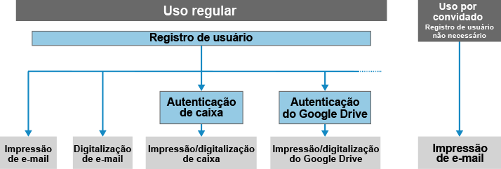 O registro de usuário não é necessário ao usar apenas a função de impressão de e-mail, mas é conveniente se a função for usada repetidamente. Para obter informações sobre como usar a função de impressão de e-mail sem registro de usuário, consulte o seguinte. |