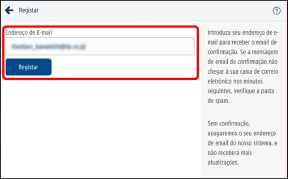 Se o endereço de e-mail inserido já estiver registrado, uma mensagem de erro será exibida. Para obter mais informações, consulte o seguinte. Se o e-mail não chegar, consulte o seguinte. |