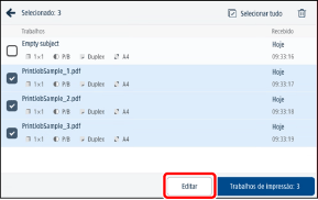 Pressione [Editar] na parte inferior direita da tela para alterar as configurações de impressão do trabalho selecionado.