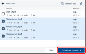 Pressione um trabalho na lista para exibir uma caixa de seleção para selecionar, caso deseja imprimi-lo.