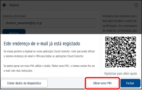 Se um endereço de e-mail já estiver registrado, um código PIN associado a esse endereço de e-mail já foi registrado. Use esse código PIN.