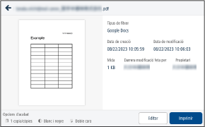 Si el procés no es pot completar, apareix un missatge d'error. Seleccioneu el fitxer un altre cop i torneu a executar la impressió.