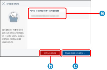 Eliminació del compte (això significa que les aplicacions de Cloud Connector que no siguin la funció d'impressió de correu electrònic per a convidats ja no es poden utilitzar)