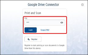 Печать/сканирование с помощью облачной службы можно выполнить, просто введя PIN-код в Cloud Connector. Входить в облачную службу не обязательно.