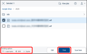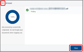 Задания, обработка которых в Cloud Connector завершилась, но еще не началась печать, сохраняются в течение 10 часов. Печать можно будет выполнить, когда вы снова войдете в систему.